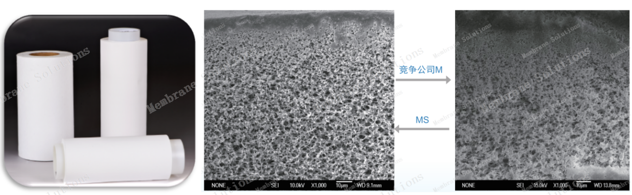 | 1、獨(dú)立自主的膜生產(chǎn)工藝 邁博瑞的PES膜采用獨(dú)特的工藝生產(chǎn)而成,具有超不對稱的膜孔結(jié)構(gòu),而且同樣的孔徑之下,相比較其他膜具備更高的水通量,更低蛋白吸附特性。 |