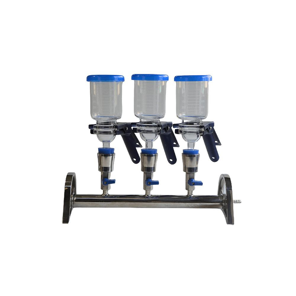 MS 多聯(lián)過濾器是專門為同時(shí)間測(cè)定多個(gè)樣品設(shè)計(jì)的。多聯(lián)過濾系統(tǒng)可同時(shí)進(jìn)行多(單、三、六)個(gè)樣品過濾,只需一個(gè)真空氣源就可以完成全部操作,節(jié)省大量的時(shí)間,方便快捷。多聯(lián)支架優(yōu)先已做拋光處理的316L材質(zhì)不銹鋼,能耐大多數(shù)腐蝕性液體,與玻璃或不銹鋼換膜過濾器配套使用。提高工作效率和試驗(yàn)條件的一致性,從而達(dá)到實(shí)驗(yàn)結(jié)果的準(zhǔn)確度。并且該過濾系統(tǒng)可以在高溫操作(180℃),尤其適用于熱過濾條件的試驗(yàn)。